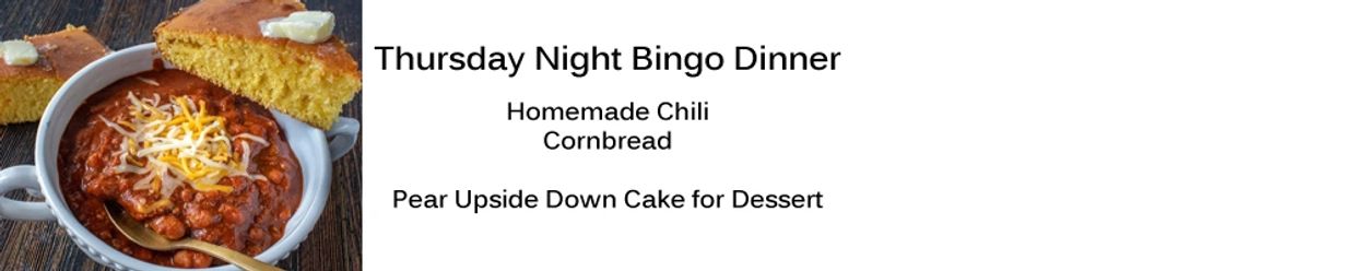 Thursday Night Bingo Dinner Menus are posted to our website as they become available.